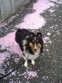 去年はパパと撮ったけど、今年はアニーちゃんと桜の花びらです。