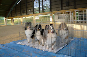 それにしても徹夜のせいで、目が変にさえちゃって緑が目に痛い。部会展はシェルティーだけなので、午前中ベビー・パピー戦で、終わり次第牡の審査。そしてアニーが出るの牝の審査は午後になるだろう。